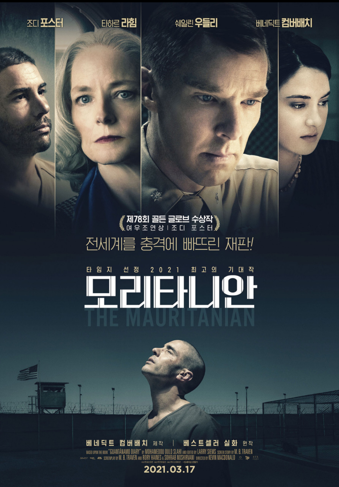 케빈 맥도널드 감독의 2021년 법정 드라마인 모리타니안은 모하메드우 울드 슬라히의 회고록 "관타나모 일기"를 바탕으로 9/11 이후 시대에 대한 흥미로운 영화적 탐구입니다. 실화를 바탕으로 한 영화로서 9/11 이후 혼란스러웠던 당시 미국 사회를 잘 보여줍니다. 9/11 이후 당시 미국에서 사회적으로 많은 사람들이 충격과 트라우마로 살아갔을지를 영화를 통해 간접적으로 볼 수 있습니다. 또 억울하게 누명을 쓴 사람들의 모습을 잘 묘사하고 있습니다. 주요 출연진은 변호사 낸시 홀랜더 역의 조디 포스터, 테리 던컨 역의 셰일린 우들리, 스튜어트 카우치 중령 역의 베네딕트 컴버배치, 모하메드우 울드 슬라히 역의 타하르 라힘 등입니다. 낸시 올랜더에 대한 조디 포스터의 묘사는 9/11 테러에 연루되었다는 혐의로부터 슬라히를 변호하기 위한 변호사의 헌신을 잘 담아낸 것입니다. 셰일린 우들리는 슬라히의 친구인 테리 던컨 역을 맡아 수감자의 삶에 인간적인 연결고리를 제공합니다. 베네딕트 컴버배치는 스튜어트 카우치 중령 역을 맡아 슬라히를 기소하는 도덕적 복잡성에 대해 고심하며 다차원적인 캐릭터를 만들어냅니다. 타하르 라힘이 모하메드우 울드 슬라히 역을 맡아 보여준 연기는 관타나모 수용소에 부당하게 억류된 한 남자의 회복력과 인간성을 가슴 아프게 묘사하고 있습니다.