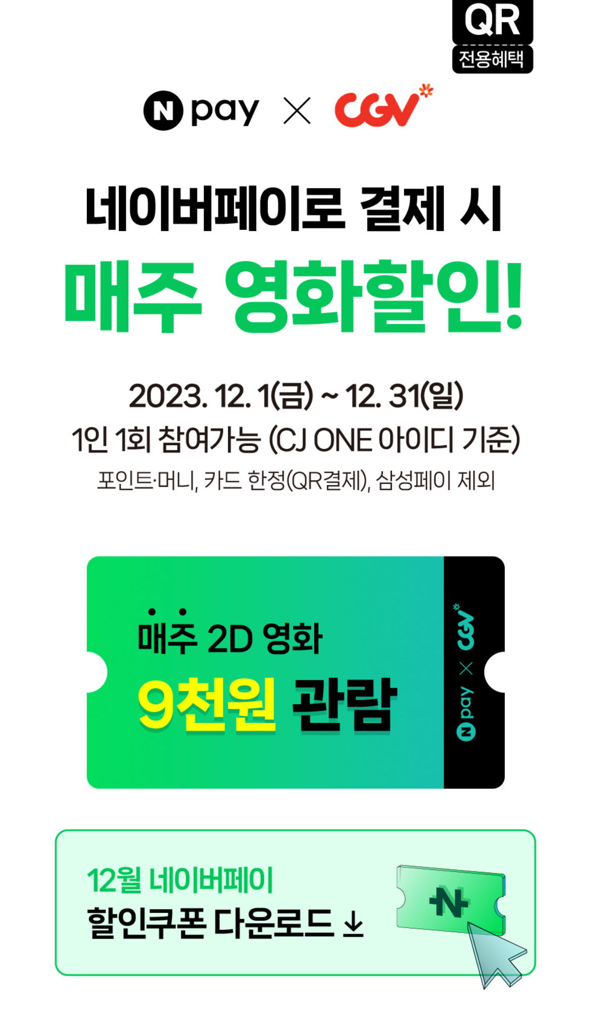 2023.12.1 (금)~12.31 (일)까지 네이버페이로 결제 시 9,000원에 볼 수 있습니다.