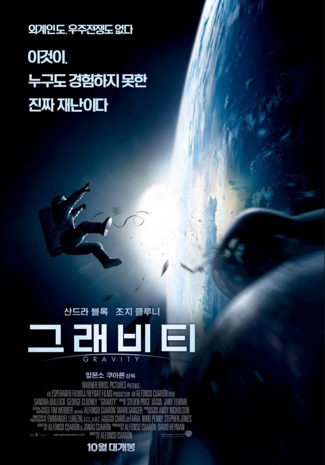 "그래비티"는 닥터 스톤과 코왈스키가 허블 우주 망원경을 수리하는 우주 유영을 하는 것으로 시작합니다. 갑자기 위성 충돌로 인한 파편 폭풍이 그들을 향해 돌진하여 그들의 우주 왕복선이 파괴되고 그들은 우주의 광활한 공간에 발이 묶이게 됩니다. 서로에게만 묶여있는 이 두 사람은 산소가 줄어들고 희망이 사라지면서 파편으로 가득 찬 공간을 항해하며 끈질긴 생존 투쟁에 직면합니다. 개인적인 비극의 무게와 씨름하는 스톤 박사가 자신의 곤경에 처한 냉혹한 현실에 맞서면서 이야기는 인간 정신의 회복력에 대한 본능적인 탐구가 됩니다. 매 순간 시간이 시간과 용서할 수 없는 우주의 본성에 대한 싸움이 됩니다. 이야기는 우주의 심연 속에서 삶에 매달리는 인물들과 함께 하는 절박함과 결단력 사이의 춤인 거침없는 오디세이입니다. 조지클루니의 역할도 중요하지만 사실상 산드라블록이 이 영화를 이끌어 갑니다. 배경의 대부분은 CG 작업이었습니다. 그럼에도 산드라 블록의 연기는 마치 실제 우주에 있는 것처럼 느껴질 정도로 놀랍습니다. 광활한 우주 속에 홀로 남겨진 공포와 외로움은 관객에게 잘 전달됩니다. 어떠한 환경에서도 살아남아야 한다는 인간의 의지를 잘 보여줍니다. 마침에 지구에 서게 되는 장면은 아직도 명장면으로 기억됩니다. 의지력이 약해지고, 포기하고 싶어질 때 이 영화의 내용은 큰 감동과 위로가 될 것입니다. 인간이란 무엇인지에 대해 근원적인 물음을 던지고 해답을 찾게 하는 좋은 내용의 영화입니다.