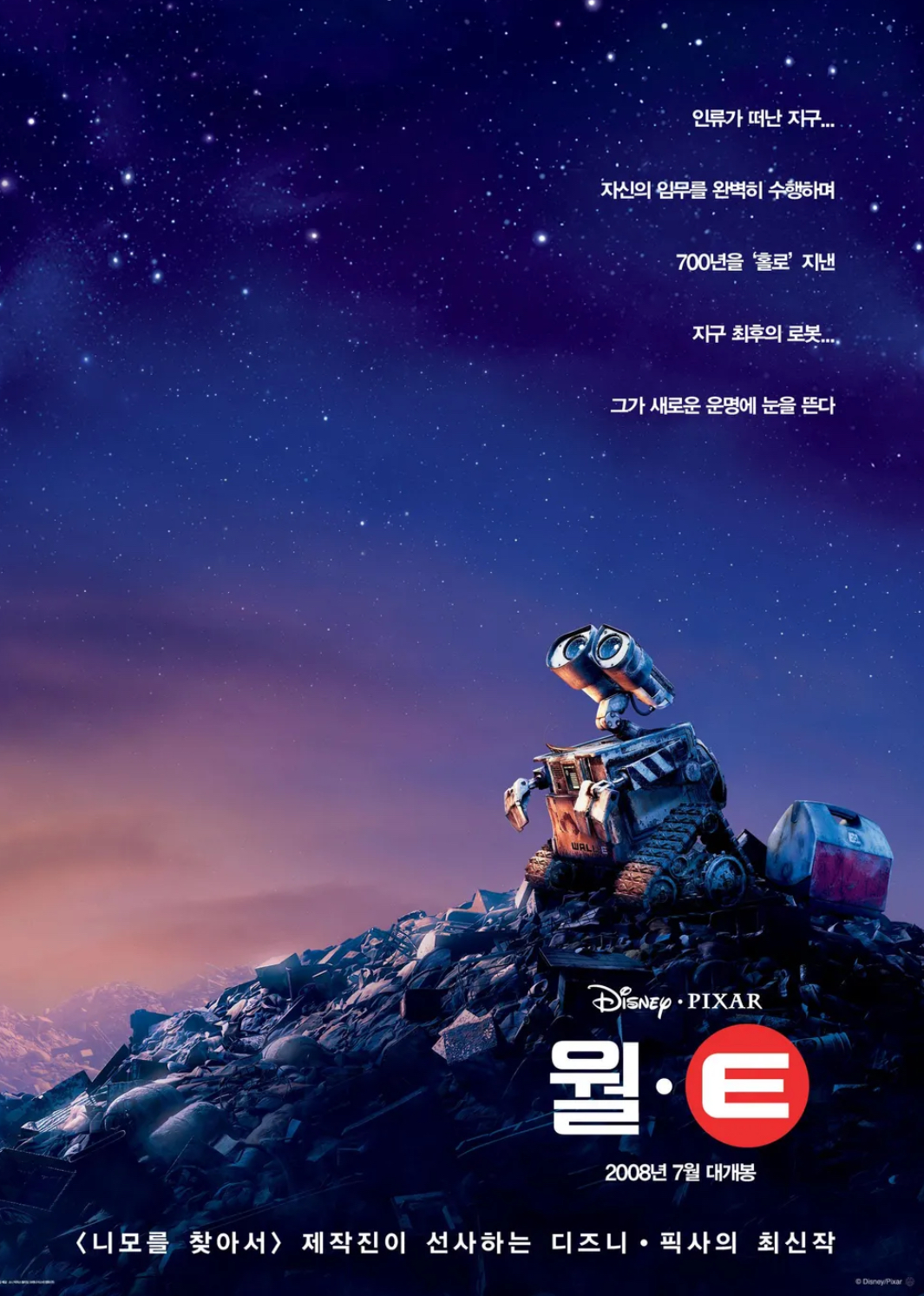 2008년에 개봉된 월-E는 픽사의 이야기 전개 기술과 혁신적인 애니메이션 기술에 대한 증거입니다. 앤드류 스탠튼이 감독한 이 영화는 지구가 황량한 황무지가 되고 마지막으로 작동하는 로봇인 월-E가 홀로 청소 임무를 수행하며 남아있는 디스토피아적인 미래로 모험을 떠납니다. 타이틀 캐릭터인 월-E는 호기심 많고 거의 아이 같은 그의 태도를 통해 빛나는 성격을 가진 소형 쓰레기 압축 로봇입니다. 그의 유일한 동반자는 바퀴벌레이고, 그의 하루는 버려지는 인류 문명의 잔재를 수집하고 정리하는 데 소비됩니다. 월-E의 일상은 그가 쓰레기 더미 속에서 작은 식물을 발견하면서 극적인 전환을 이루며, 이야기를 진전시키는 일련의 사건들을 촉발시킵니다. 또 다른 로봇인 이브가 지구에서 지속 가능한 생명의 흔적을 찾기 위한 미션의 일환으로 현장에 들어갑니다. 이브의 날렵한 디자인과 발전된 기술은 월-이의 닳고 풍화된 모습과 극명한 대조를 이룹니다. 이 두 로봇은 함께 영화의 핵심이 되어 감정을 전달하고 기계적인 기원을 뛰어넘는 연결 관계를 형성합니다. 영화는 81회 미국 아카데미 시상식에서 장편애니메이션상을 수상합니다. 66회 골든 글로브 시상식에서도 장편애니메이션상을 수상합니다. 그 외에도 다양한 시상식에서 상을 받으며 인정을 받게 됩니다. 점점 오염되는 지구에 살고 있는 인간들에게 많은 점을 시사해 줍니다. 유쾌하지만 감동과 교훈을 주는 좋은 영화입니다.