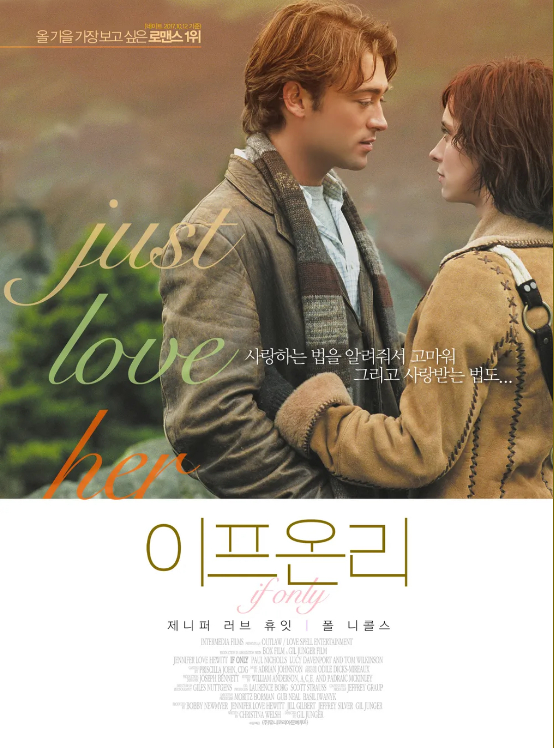 이프 온리는 길 융거가 감독한 2004년에 개봉된 진심 어린 로맨틱 드라마 영화입니다. 어느덧 영화가 개봉한 지 20년이 지났지만 아직도 영화의 명장면이 기억이 납니다. 영화는 제니퍼 러브 휴이트가 연기한 사만다 앤드류스와 폴 니콜스가 연기한 그녀의 파트너 이안 윈덤의 캐릭터를 중심으로 전개됩니다. 런던을 배경으로, 영화는 사랑, 상실, 그리고 순간을 포착하는 중요성에 대한 주제들을 탐구합니다. 제니퍼 러브 휴잇의 사만다에 대한 묘사는 사랑과 후회의 복잡성을 포착하며 사랑스럽고 공감할 수 있습니다. 폴 니콜스는 영화의 감정적인 영향의 중심이 되는 화학물질을 만들면서, 이안의 캐릭터에 깊이를 부여합니다. 조연은 사만다의 아버지 역으로 톰 윌킨슨을 포함하고, 이안의 어머니 역으로 다이애나 하드캐슬을 포함하며, 이야기의 가족적인 함축된 의미에 기여합니다. 최근에 오래된 영화들이 재개봉하며 다시 감동을 주는 경우가 많습니다. 이프 온리 역시도 2017년 재개봉해서 다시 많은 관객들에게 감동을 선사했습니다. 이 영화는 높은 평점을 기록하며, 큰 감동을 준 영화로 기억됩니다. 로맨스 영화이지만 상상력을 감미해서 관객들에게 감동을 줍니다. 뻔한 내용이었다면 크게 감동을 주지 못했겠지만, 상상력을 감미해서 관객들로 하여금 더더욱 감동을 느끼게 해 줍니다. 이 영화로 제니퍼 러브 휴잇은 많은 남성 팬들의 인기를 얻게 됩니다. 다양한 로맨틱 영화에 출연해서 매력을 표현합니다.