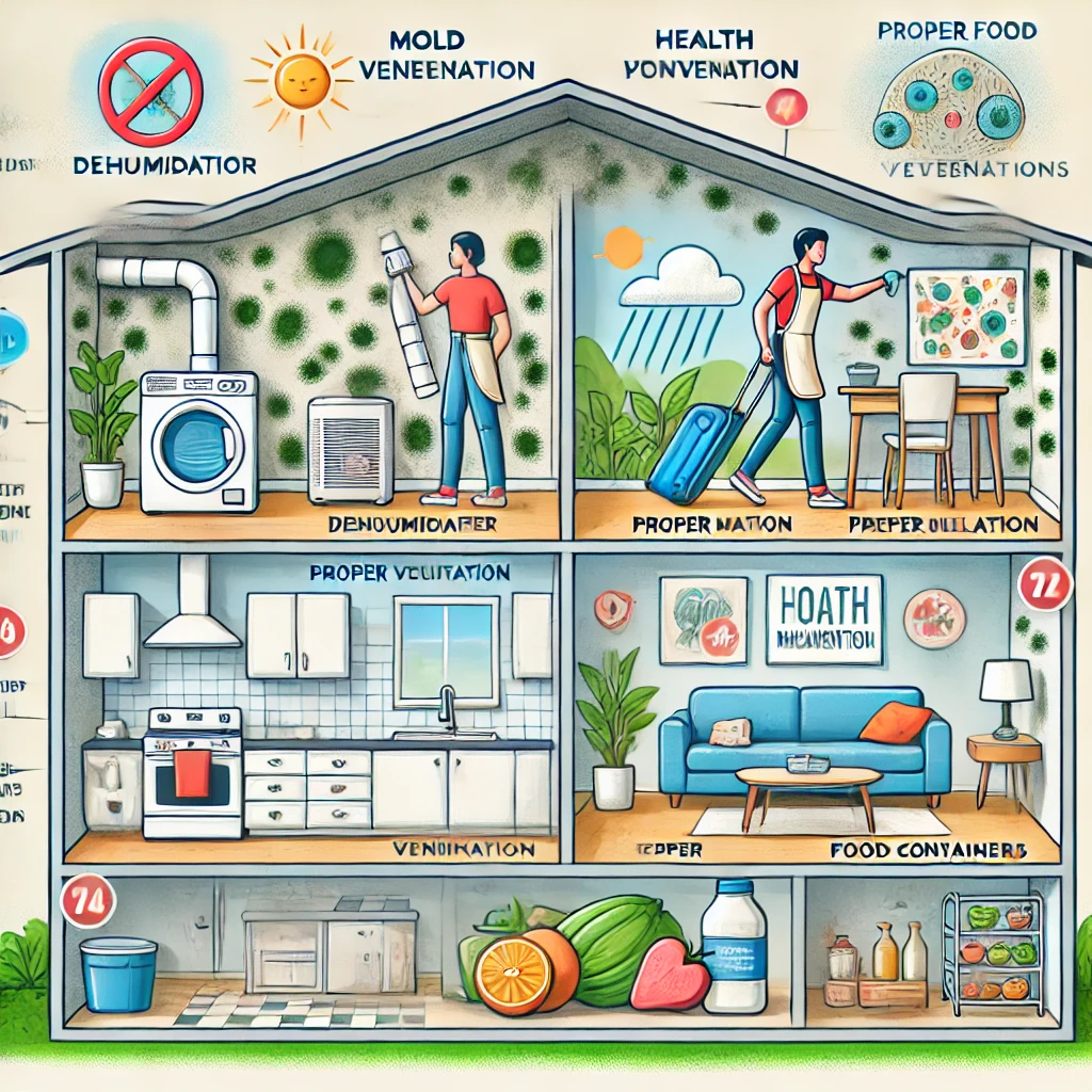 - 안전한 식품 보관: 곡물, 견과류, 건조 식품 등은 습기가 차지 않도록 밀폐 용기에 보관하고, 오래된 음식은 섭취하지 않는 것이 중요합니다.