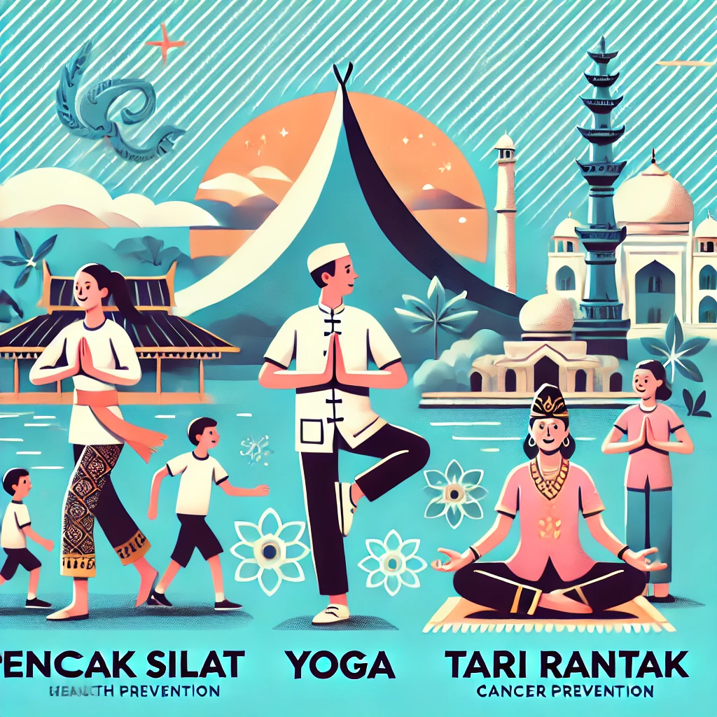 - 요가(Yoga): 원래 인도에서 기원한 운동이지만, 인도네시아에서도 광범위하게 수행되고 있습니다. 요가는 심신 안정과 유연성 향상에 도움을 주며, 스트레스 호르몬 분비를 억제하여 암 예방에도 긍정적인 영향을 미칩니다.