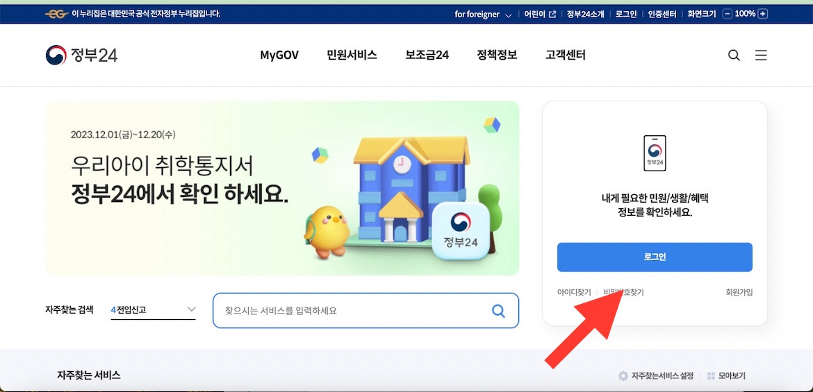 먼저 정부24 홈페이지를 접속하고 로그인합니다.
