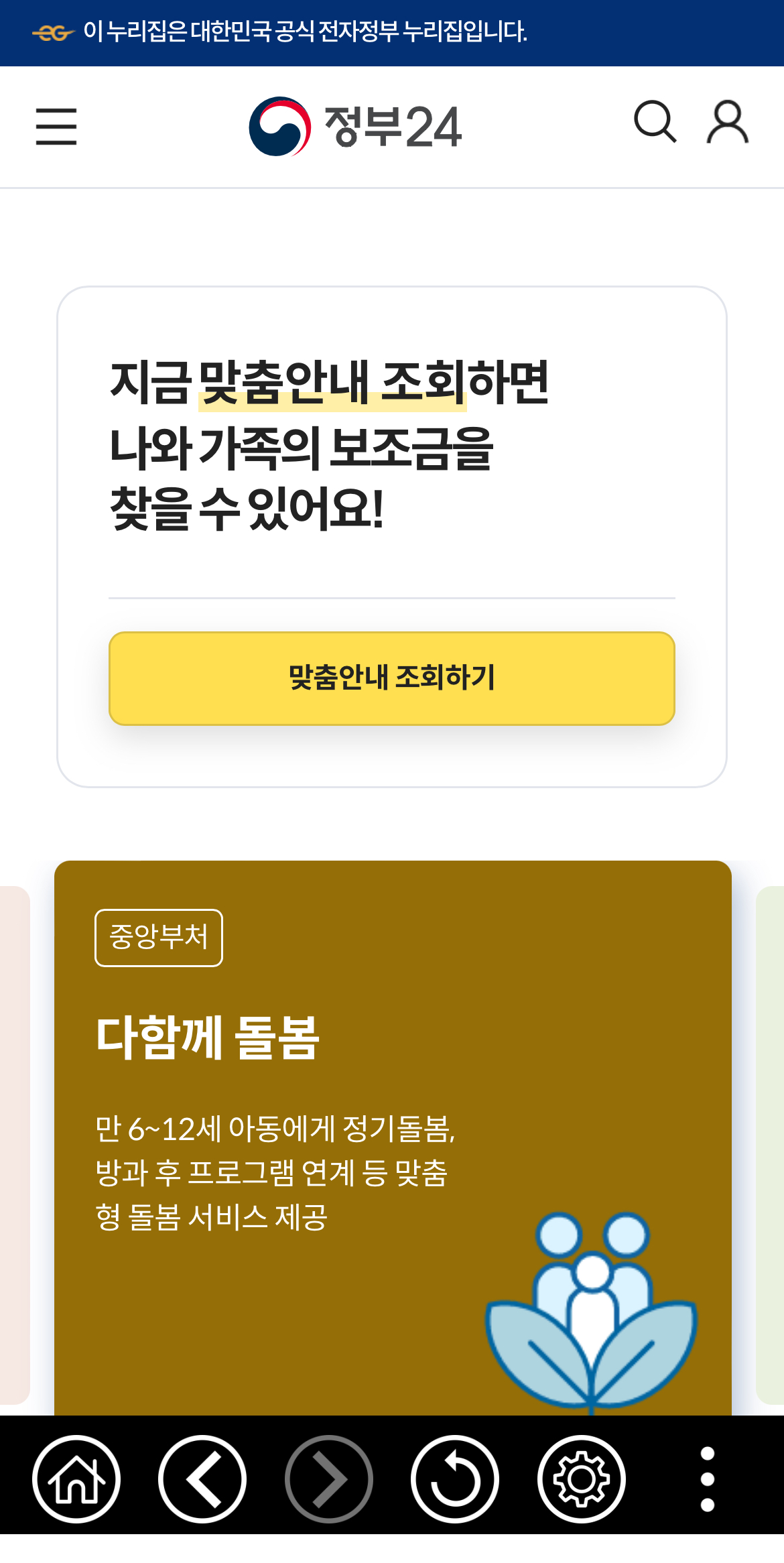 정부24 어플로도 접속해서 정부지원금을 확인할 수 있습니다.
