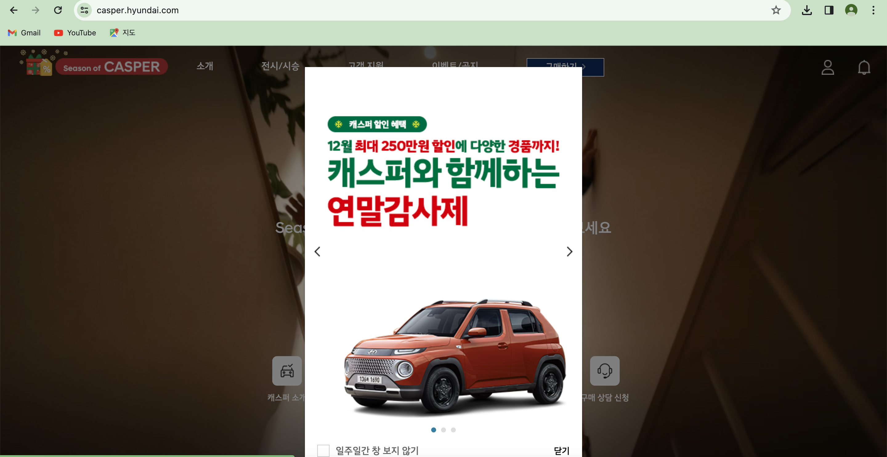 먼저, 현대자동차 캐스퍼 온라인 홈페이지에 접속합니다.